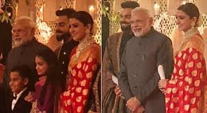 नई दिल्ली : विराट-अनुष्का का दिल्ली में चल रहे वेडिंग रिसेप्शन में प्रधानमंत्री नरेंद्र मोदी ने भी शिरकत की। पीएम मोदी ने नई जोड़ी को बधाई दी। साथ ही नए जोड़ी के रिश्तेदारों के साथ फोटो भी खिंचवाईं। इससे पहले भारतीय क्रिकेट टीम के कप्तान विराट कोहली और अभिनेत्री अनुष्का शर्मा ने फैंस और मीडिया के लिए फोटो भी करवाईं। बता दें कि दिल्ली के ताज डिप्लोमैटिक एन्क्लेव के दरबार हॉल में रात 8.30 बजे रिसेप्शन पार्टी शुरू हुई थी। इस रिसेप्शन में विराट और अनुष्का ने अपने खास रिश्तेदारों और क्लोज फ्रेंड्स को ही इनवाइट किया है। क्रिकेट और बॉलीवुड वल्र्ड की तमाम हस्तियों इसमें मौजूद नहीं रहेंगी। दिल्ली के ताज डिप्लोमेटिक एन्क्लेव की गिनती फाइव स्टार होटलों में होती है। होटल ताज के दरबार हॉल में रिसेप्शन दिया जाएगा। होटल में 292 लग्जरी रूम हैं औऱ 1000 से ज्यादा गेस्ट्स आ सकते हैं। इस होटल में लग्जरी स्पा और सैलून भी है तथा यहां का इंडियन, यूरोपियन और चाइनीज फूड काॅफी फेमस है। होटल में 300 कार अंदर और 250 कार बाहर खड़ी की जा सकती हैं।