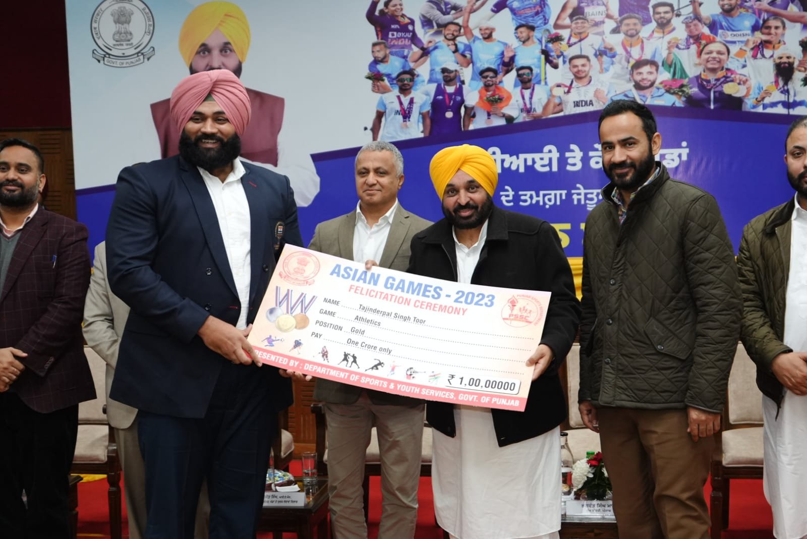 राष्ट्रीय और अंतरराष्ट्रीय खेलों में पदक जीतने वाले पंजाब के खिलाडिय़ों ने एशियन और राष्ट्रीय खेलों के 168 विजेताओं को बनता मान-सम्मान देने और 33.83 करोड़ रुपए के नकद इनाम देने के लिए आज मुख्यमंत्री भगवंत सिंह मान के नेतृत्व वाली पंजाब सरकार का धन्यवाद किया।