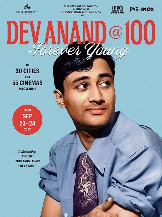 दिवंगत अभिनेता देव आनंद की जन्मशती के मौके पर 23 और 24 सितंबर को देश के 30 शहरों और 55 सिनेमाघरों में एक फिल्म महोत्सव आयोजित किया जाएगा। फिल्म हेरिटेज फाउंडेशन (एफएचएफ) ने सोमवार को यह घोषणा की। हम दोनों, तेरे घर के सामने, सीआईडी और गाइड जैसी फिल्मों में अपने दमदार अभिनय के लिए प्रसिद्ध देव आनंद को 26 सितंबर को उनके जन्मदिवस से पहले ‘देव आनंद @100 – फॉरएवर यंग’ कार्यक्रम के जरिये श्रद्धांजलि दी जाएगी। एक प्रेस विज्ञप्ति के मुताबिक, इस दो दिवसीय महोत्सव का आयोजन भारतीय राष्ट्रीय फिल्म विकास निगम (एनएफडीसी), भारतीय राष्ट्रीय फिल्म पुरालेख (एनएफएआई) और पीवीआर आइनॉक्स साथ मिलकर कर रहे हैं।