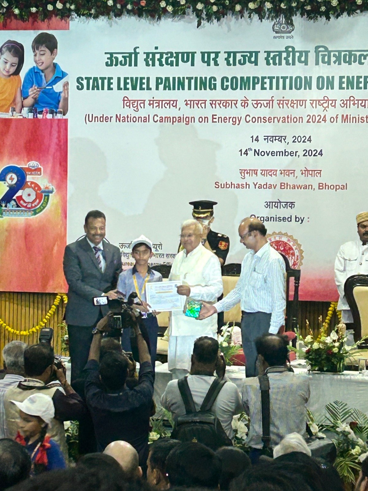 छिंदवाड़ा(भगवानदीन साहू)- उच्च शिक्षा एवं उत्तम संस्कार के लिए ख्याति प्राप्त श्री शक्ति ट्रस्ट द्वारा संचालित सन्त श्री आशारामजी गुरुकुल के विद्यार्थी तुषार लहारे कक्षा 7 को म.प्र. के राज्यपाल मंगू भाई पटेल ने प्रमाण पत्र और 9 हजार 500 रुपये की राशि देकर पुरुस्कृत किया । यह पुरस्कार विद्युत मंत्रालय भारत सरकार द्वारा आयोजित राज्य स्तरीय ऊर्जा संरक्षण प्रतियोगिता में उत्कृष्ट प्रदर्शन करने पर दिया है। पूरे म.प्र. ने इस चित्रकला प्रतियोगिता में 100 प्रतियोगियों ने भाग लिया था । जिले के लगभग 5 हजार स्कूलों में से गुरुकुल के विद्यार्थी का चयन हुआ । यह जिले के लिए गौरव की बात है । उक्त गुरुकुल आधुनिक शिक्षा के साथ आध्यात्मिक शिक्षा के लिए पूरे देश में प्रसिद्ध है । इसलिए इस गुरुकुल में देश भर के 24 राज्यों के विद्यार्थी अध्ययनरत हैं । ऐसे कई बार अवसर आये कि समय – समय पर मुख्यमंत्री , राज्यपाल , जिला कलेक्टर , जिला शिक्षा अधिकारी गुरुकुल के विद्यार्थियों को सम्मानित करते रहें हैं । तुषार पिता गुनिराम लहारे मूलतः छत्तीसगढ़ का निवासी है । इस गौरान्वित पल पर साध्वी रेखा बहन , साध्वी प्रतिमा बहन , खजरी आश्रम के संचालक जयराम भाई , समिति के अध्यक्ष मदनमोहन परसाई , गुरुकुल की संचालिका दर्शना खट्टर , प्राचार्या प्रिया सिंह , प्रबंधक डॉ. सुशील सिंह परिहार , छात्रावास प्रभारी सोमनाथ पवार , शिक्षक अभिषेक चौकसे ने शुभाशीष प्रदान किया ।