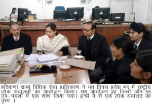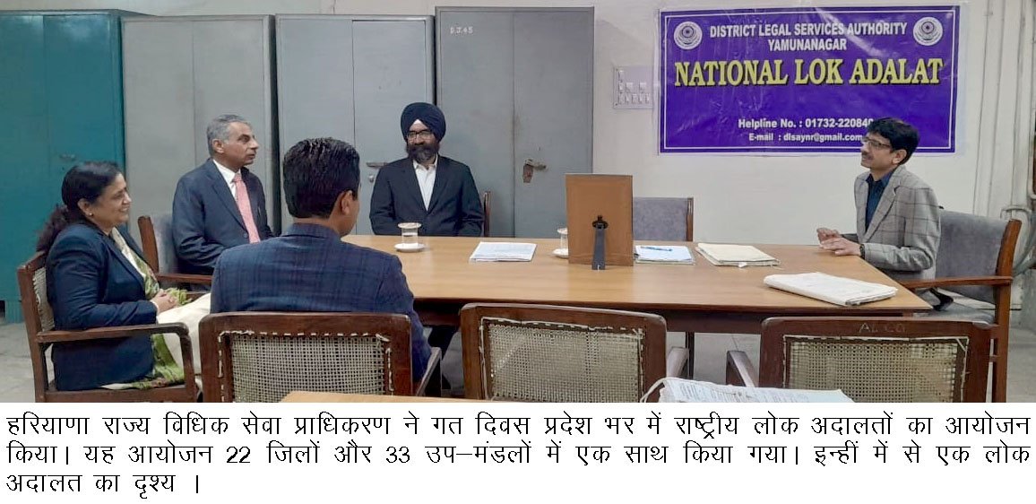 हरियाणा,12-02-23(प्रेस की ताकत): हरियाणा राज्य विधिक सेवा प्राधिकरण ने गत दिवस प्रदेश भर में राष्ट्रीय लोक अदालतों का आयोजन किया। यह आयोजन 22 जिलों और 33 उप-मंडलों में एक साथ किया गया। इन्हीं में से एक लोक अदालत का दृश्य ।