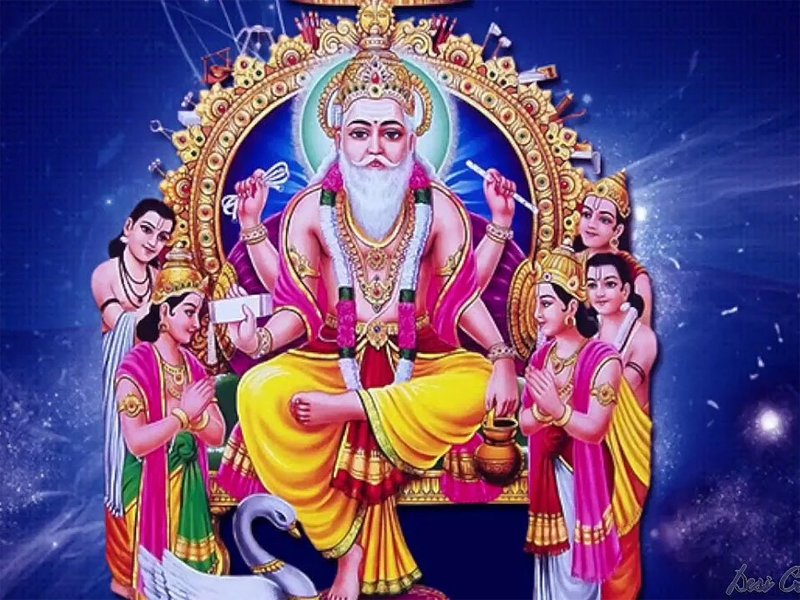 आज के समय अंदर भी यह बने हुए डैम, मीलों, गगनचुम्बी इमारतें, रेलवे लाईनों, पहाड़ों में खुदियें हुई सुरंगों और ओर कई प्रकार के हथियार और इतना सब की उसारी के लिए इस्तेमाल करे गए औज़ार, यह सब बाबा विशकरमा की कला की ही देने है।रामायण में लिखा मिलता है कि विशकरमा आठवें वश प्रभात का पुत्र लावनयमती के पेटों जन्मा, इस की बेटी संजना का विवाह सूर्य के साथ हुआ था, परन्तु जब संजना सूर्य का तेज सह न सकी तो विशकरमा ने सूर्य को अपने ख़राद पर चढ़ा कर उस का आठवां भाग छिलका दिया। जिस से सूर्य की तपस् कम हो गई।सूर्य के छिलका से विशकरमा ने विशनूं का चक्कर, शिवजी का त्रिशूल, कार्तिकेय की बर्छी और ओर कई देवी देवतों के सस्तर बनाऐ।