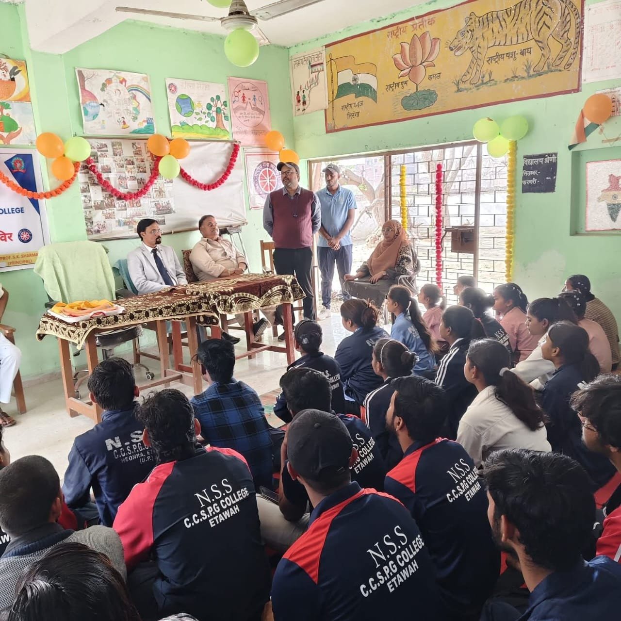अध्यक्षीय संबोधन में प्राचार्य ने सेवा, समर्पण और अनुशासन को एनएसएस की मूल भावना बताते हुए कहा कि यह युवाओं के व्यक्तित्व विकास का सशक्त माध्यम है। मुख्य अतिथि दिलावर सिंह ने युवाओं से समाजसेवा के माध्यम से नेतृत्व क्षमता विकसित करने का आह्वान किया। विशिष्ट अतिथि प्रधानाध्यापिका श्रीमती वंदना ने विद्यालय परिवार की ओर से पूर्ण सहयोग का आश्वासन दिया।