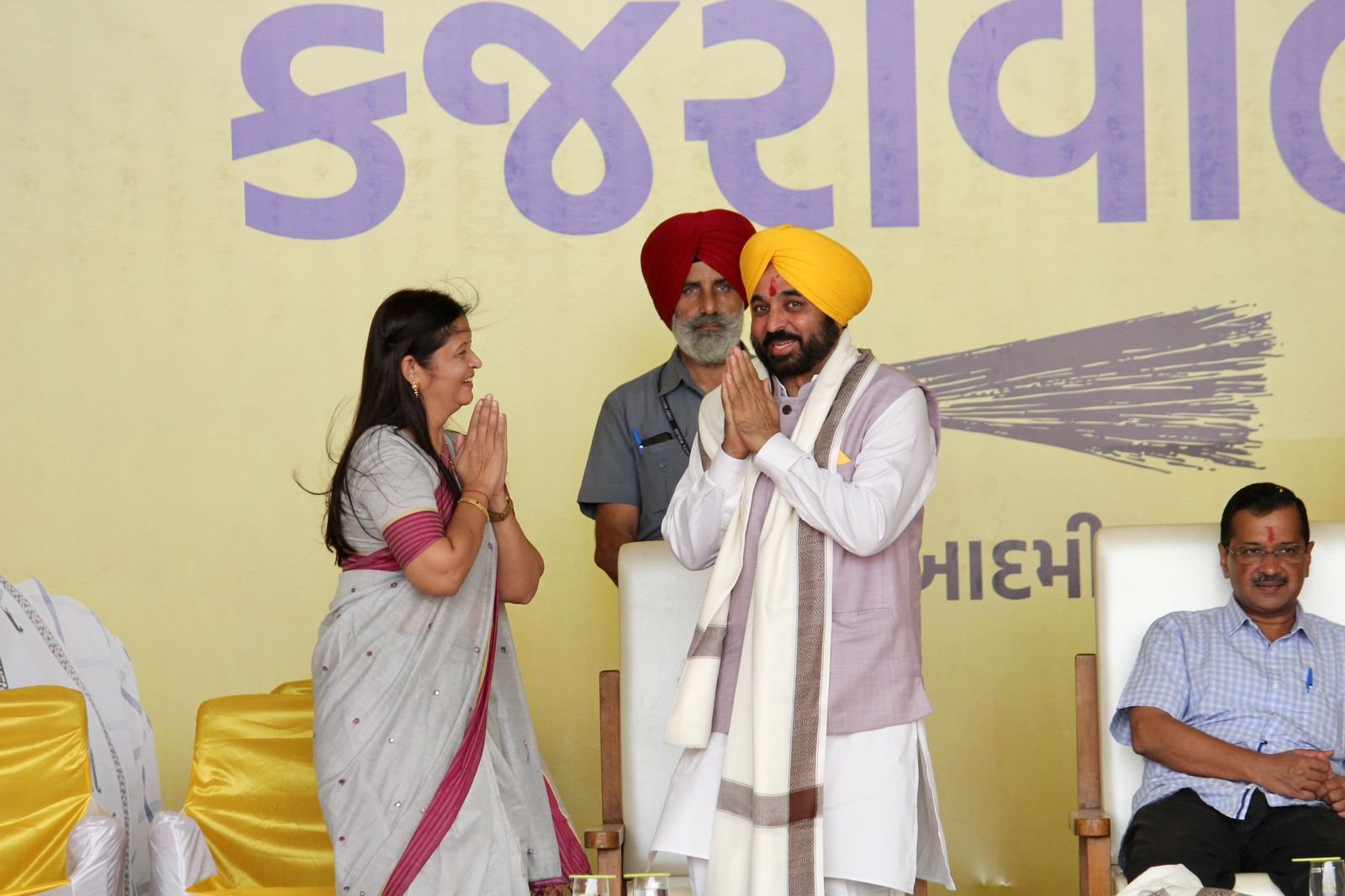 आज यहाँ दिल्ली के मुख्यमंत्री अरविन्द केजरीवाल के साथ लोगों के सामने होते हुए भगवंत मान ने कहा, ‘‘भारतीय जनता पार्टी 27 सालों से गुजरात में सरकार चला रही है परन्तु यहाँ के लोग शिक्षा और सेहत जैसी आम सहूलतों को तरस रहे हैं। मैं यकीन के साथ कह सकता हूं कि अब राज्य की जनता जाग उठी है और आगामी विधान सभा मतदान में भारतीय जनता पार्टी को सबक सिखाने के लिए तैयार बैठी है। इस राज्य में भी दिल्ली और पंजाब की तरह बदलाव की आँधी बह रही है। हम गुजरात समेत देश भर में झाड़ू के साथ राजनैतिक क्षेत्र में फैली गन्दगी साफ़ करेंगे।’’