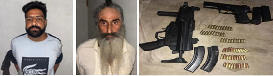 ਚੰਡੀਗੜ੍ਹ 4 ਅਕਤੂਬਰ (ਸ਼ਿਵ ਨਾਰਾਇਣ ਜਾਂਗੜਾ): ਪੰਜਾਬ ਪੁਲਿਸ ਨੂੰ ਐਤਵਾਰ ਨੂੰ ਮਿਲੀ ਇਕ ਵੱਡੀ ਸਫ਼ਲਤਾ ਤਹਿਤ ਹੁਸ਼ਿਆਰਪੁਰ ਜ਼ਿਲ੍ਹੇ ਦੇ ਪਿੰਡ ਨੂਰਪੁਰ ਜੱਟਾਂ ਦੇ ਦੋ ਵਿਅਕਤੀਆਂ ਮੱਖਣ ਸਿੰਘ ਗਿੱਲ ਉਰਫ਼ ਅਮਲੀ ਅਤੇ ਦਵਿੰਦਰ ਸਿੰਘ ਉਰਫ਼ ਹੈਪੀ ਨੂੰ ਗ੍ਰਿਫ਼ਤਾਰ ਕਰਕੇ ਖਾਲਿਸਤਾਨ ਜ਼ਿੰਦਾਬਾਦ ਫੋਰਸ (ਕੇਜੇਡਐਫ) ਦੇ ਅੱਤਵਾਦੀ ਮੌਡਿਊਲ ਦਾ ਪਰਦਾਫਾਸ਼ ਕੀਤਾ ਗਿਆ। ਪੁਲਿਸ ਨੇ ਉਂਨਾਂ ਕੋਲੋਂ 2 ਅਤਿ-ਆਧੁਨਿਕ ਹਥਿਆਰ ਅਤੇ ਅਸਲਾ ਬਰਾਮਦ ਕੀਤਾ ਜਿਸ ਵਿੱਚ ਇੱਕ ਐਮਪੀ5 ਸਬ-ਮਸ਼ੀਨ ਗੰਨ ਸਮੇਤ ਦੋ ਮੈਗਜ਼ੀਨ ਤੇ 30 ਜ਼ਿੰਦਾ ਕਾਰਤੂਸ ਅਤੇ ਇੱਕ 9 ਐਮਐਮ ਪਿਸਤੌਲ ਸਮੇਤ ਦੋ ਮੈਗਜ਼ੀਨ ਤੇ 30 ਜ਼ਿੰਦਾ ਕਾਰਤੂਸਾਂ ਤੋਂ ਇਲਾਵਾ ਇੱਕ ਚਿੱਟੇ ਰੰਗ ਦੀ ਈਟੀਓਸ ਕਾਰ (ਪੀਬੀ-11-ਬੀਕਯੂ 9994), 4 ਮੋਬਾਈਲ ਫੋਨ ਅਤੇ ਇਕ ਇੰਟਰਨੈਟ ਡੌਂਗਲ ਸ਼ਾਮਲ ਹਨ।