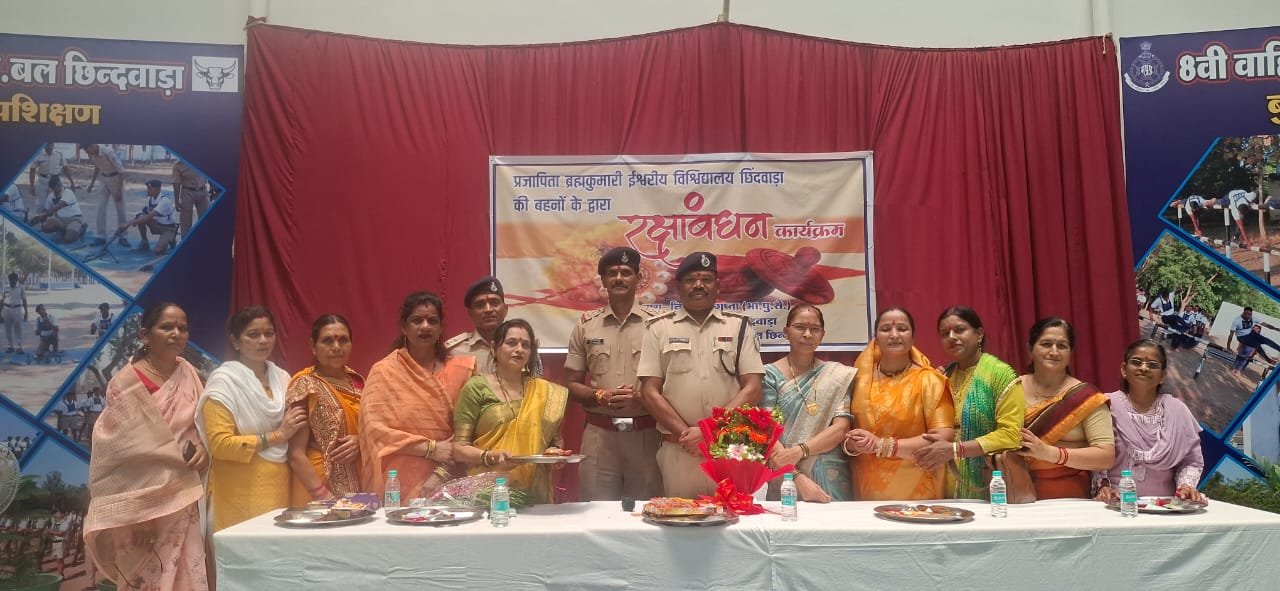 छिंदवाड़ा(सुशील सिंह परिहार)- *परम पूज्य संत श्री आसाराम जी बापू के आशीर्वाद से प्रतिवर्ष की तरह इस वर्ष भी श्री योग वेदांत सेवा समिति, श्री शक्ति ट्रस्ट, महिला उत्थान मंडल की सभी बहनों ने छिंदवाड़ा जिला के (SAF),(PTS) आठवीं बटालियन में पुलिस के जवानों व अधिकारियों को वैदिक रक्षा सूत्र बांधकर रक्षाबंधन पर्व धूमधाम से मनाया। समिति की बहिनों ने प्रशिक्षु पुलिस के जवानों के मंगलमय जीवन और दीर्घायु की कामना कर रक्षा सूत्र उनकी कलाई पर बांधे और उन्हे आश्रम की ओर से प्रसाद स्वरुप मिठाई भेंट की । इस पावन पर्व पर सभी जवान व अधिकारी भावुक हुए व समिति तथा आश्रम का हृदय पूर्वक आभार व्यक्त किया ।*
