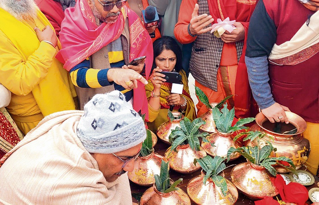 श्री राम जन्मभूमि तीर्थ क्षेत्र ट्रस्ट के सदस्य अनिल मिश्रा, उनकी पत्नी और अन्य लोगों ने सरयू नदी तट पर ‘कलश पूजन’ किया। मिश्रा ‘अनुष्ठान’ के लिए ‘यजमान’ हैं और उन्हें 22 जनवरी को किए जाने वाले अनुष्ठानों सहित सभी अनुष्ठानों में भाग लेना है। आमतौर पर यजमान अनुष्ठान का मुख्य ‘पुजारी’ होता है। यजमान की ओर से ही प्रार्थना की जाती है। अयोध्या में इन अनुष्ठानों का संचालन 121 आचार्य कर रहे हैं और गणेश्वर शास्त्री द्रविड़ अनुष्ठान की सभी कार्यवाही की देखरेख, समन्वय एवं निर्देशन कर रहे हैं।