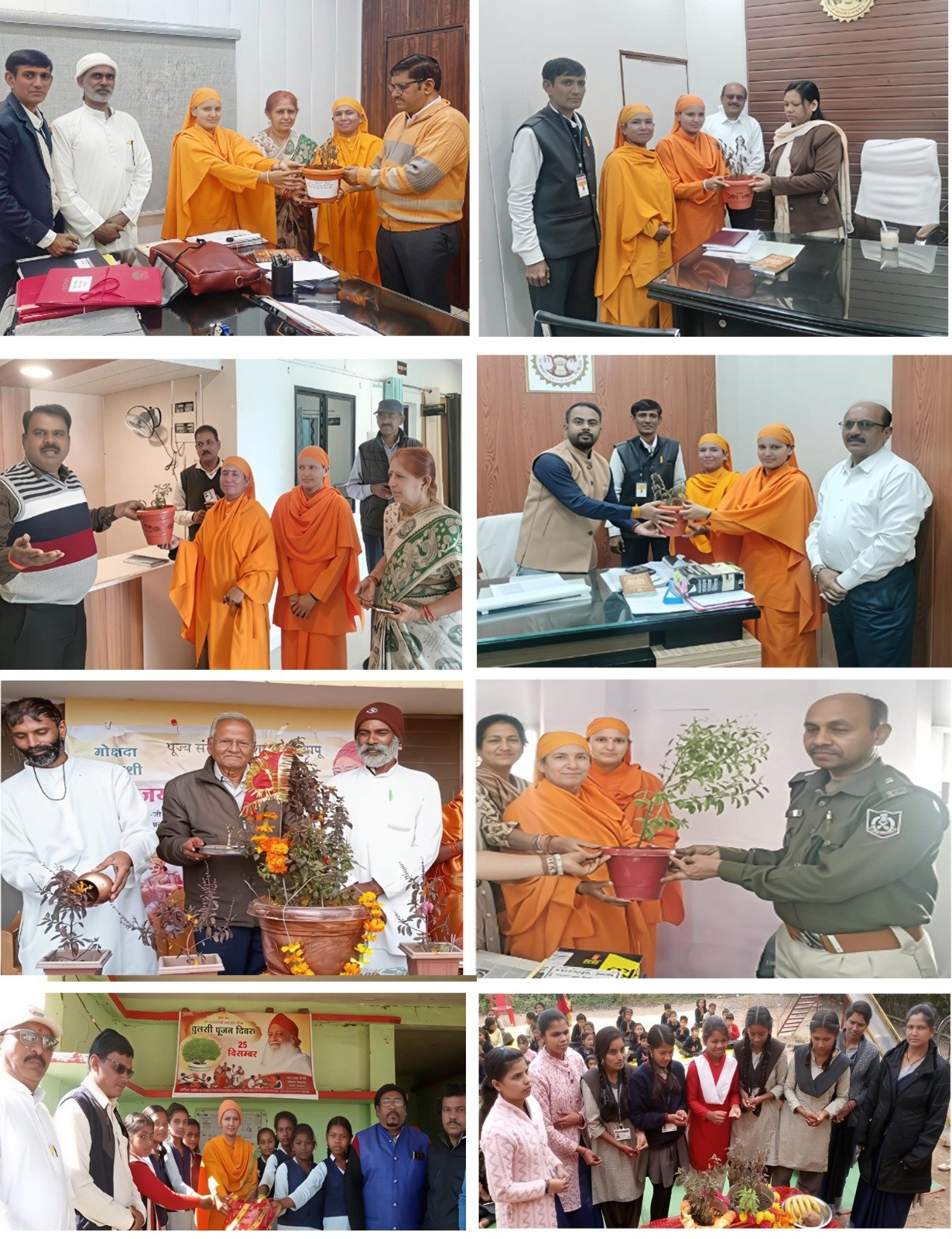 छिंदवाड़ा(भगवान्दीन साहू)-  तुलसी पूजन विश्वव्यापी अभियान अन्तर्गत श्री शक्ति ट्रस्ट एवं संस्कृत पुस्तकोन्नति सभा द्वारा संचालित सन्त श्री आशाराम जी आश्रम खजरी और लिंगा आश्रम द्वारा प्रतिवर्षानुसार इस वर्ष भी तुलसी पूजन दिवस हर्षोल्लास मनाया जा रहा है । श्री योग वेदांत सेवा समिति के तत्वावधान में जिले भर में कार्यक्रम अनवरत जारी है । विद्यार्थी स्वस्थ रहे निरोगी रहे , तेजस्वी बने इस निमित सैकड़ों स्कूलों में विद्यार्थियों को तुलसी पौधे के महत्व से अवगत कराया गया । तुलसी पौधा 24 घण्टे ऑक्सीजन प्रदान करता है । इसकी परिक्रमा से ग्रह जनित बाधा से मुक्ति मिलती हैं । तुलसी दल सेवन से अनगिनत बीमारियों से छुटकारा मिलता हैं और यादशक्ति बढ़ती है । ऐसे अनगिनत फायदे तुलसी पौधे से है । तुलसी पौधा समस्त प्राणियों के लिए वरदान है । समिति के माध्यम से जिले भर की भागवत कथाओं में और सैकड़ों स्कूलों में गत 1 माह से यह आयोजन सम्पन हो रहें हैं । मुख्य आयोजन 25 दिसंबर को सम्पन्न होगा । जिले के उच्च अधिकारी जिसमें पुलिस उप महानिरीक्षक ( DIG ) राजेन्द्र सिंह , जिला कलेक्टर हरेंद्र नारायण , जिला पुलिस अधीक्षक अजय पांडे , सहायक कलेक्टर ज्योति ठाकुर , डिप्टी कलेक्टर राहुल पटेल ,जिला जेल उप अधीक्षक ज्ञानेषु भारती, जिला भाजपा अध्यक्ष शेषराव यादव , जिला पंचायत अध्यक्ष संजय पुन्हार सहित अन्य राजनीतिक दलों के प्रतिनिधियों को तुलसी पौधा भेंट किया । प्राप्त जानकारी से ज्ञात हुआ है कि अभी तक अनवरत जारी कार्यक्रमो में जिले में 4 लाख से अधिक लोग लाभांवित हो चुकें हैं। इस प्रकार की सेवाएं देश भर के 550 आश्रम और 2500 समितियां प्रतिदिन कर रहीं हैं जिसमें करोड़ों- करोड़ों लोग लाभांवित हो रहें हैं । इस दैवीय कार्य में समिति के अध्यक्ष मदन मोहन परसाई , खजरीं आश्रम के संचालक जयराम भाई , गुरुकुल की संचालिका दर्शना खट्टर , लिंगा आश्रम की संचालिका साध्वी प्रतिमा बहन , साध्वी रेखा बहन , सुभाष इंगले , विलास घोंगे , अशोक कराडे , बबलू माहोरे , महिला समिति से ललिता घोंगे ,विमल शेरके , डॉ. मीरा पराड़कर , प्रीति सोंनारे , सुधा ताम्रकार , रुपाली इंगले ,छाया सूर्यवंशी, करुणेश पाल , योगिता पराड़कर , आदि अपनी – अपनी सेवाएं दे रहीं हैं । उक्त जानकारी समिति के मीडिया प्रभारी भगवानदीन साहू ने दी ।