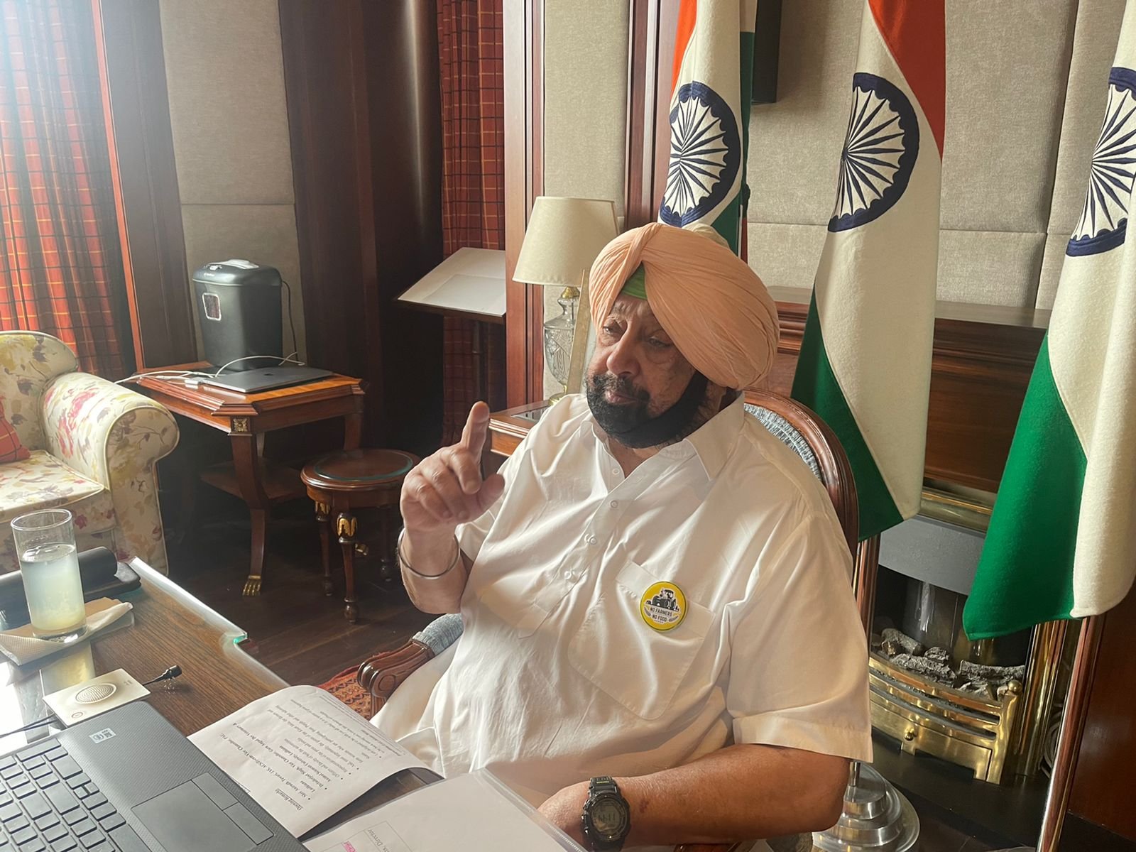 मुख्यमंत्री ने आज पंजाब कृषि यूनिवर्सिटी, लुधियाना द्वारा करवाए तीसरे राज्य स्तरीय वर्चुअल किसान मेले के उद्घाटन के मौके पर ‘यदि किसान नहीं तो भोजन नहीं’ का बैज लगाया हुआ था। पंजाब सरकार द्वारा पराली जलाए जाने के रुझान को ख़त्म करने के लिए की जा रही कोशिशों की तर्ज़ पर इस दो दिवसीय मेले का मुख्य विषय भी ‘करीए पराली दी संभाल, धरती माँ होवे ख़ुशहाल’ है।