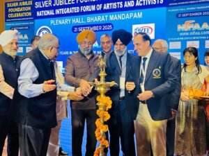 ਨਵੀਂ ਦਿੱਲੀ 22 ਸਤੰਬਰ (ਮਨਮੋਹਨ ਸਿੰਘ) ਨੈਸ਼ਨਲ ਇੰਟੀਗ੍ਰੇਟਿਡ ਫੋਰਮ ਆਫ਼ ਆਰਟਿਸਟਸ ਐਂਡ ਐਕਟਿਵਿਸਟਸ (ਨਿਫ਼ਾ) ਵੱਲੋਂ ਸਿਲਵਰ ਜੂਬਲੀ ਫਾਊਂਡੇਸ਼ਨ ਸਮਾਰੋਹ ਅੱਜ ਨਵੀਂ ਦਿੱਲੀ ਦੇ ਭਾਰਤ ਮੰਡਪਮ ਦੇ ਪਲੇਨਰੀ ਹਾਲ ਵਿੱਚ ਬੇਮਿਸਾਲ ਉਤਸ਼ਾਹ ਅਤੇ ਗਰਮਜੋਸ਼ੀ ਨਾਲ ਮਨਾਇਆ ਗਿਆ।