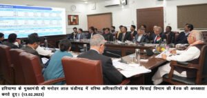 ਚੰਡੀਗੜ੍ਹ,13-02-23(ਪ੍ਰੈਸ ਕੀ ਤਾਕਤ ਬਿਊਰੋ): ਹਰਿਆਣਾ ਦੇ ਮੁੱਖ ਮੰਤਰੀ ਸ੍ਰੀ ਮਨੋਹਰ ਲਾਲ ਚੰਡੀਗੜ੍ਹ ਵਿੱਚ ਸਿੰਚਾਈ ਵਿਭਾਗ ਦੇ ਸੀਨੀਅਰ ਅਧਿਕਾਰੀਆਂ ਨਾਲ ਮੀਟਿੰਗ ਦੀ ਪ੍ਰਧਾਨਗੀ ਕਰ ਰਹੇ ਹਨ।