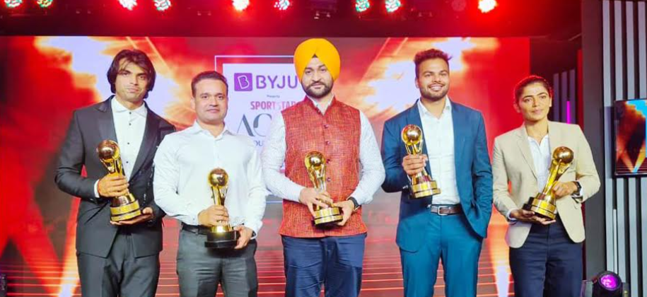 पंचकूला 20 मार्च (प्रेस की ताकत बयूरो)- हरियाणा के राज्य खेल मंत्री सरदार संदीप सिंह राज्य की ओर से एसीईएस स्पोर्ट्स स्टार अवार्ड्स हिन्दू ग्रुप द्वारा खेलों को बढ़ावा देने के लिए प्रदान किया गया ‘श्रेष्ठ राज्य पुरस्कार’ प्राप्त करते हुए एसीईएस स्पोर्ट्स स्टार अवार्ड्स में पुरस्कार प्राप्त करने के बाद हरियाणा के राज्य खेल मंत्री सरदार संदीप सिंह एवं खेल निदेशक पंकज नैन के साथ खिलाड़ी नीरज चोपड़ा, सुमित अंतिल तथा सविता पुनिया।