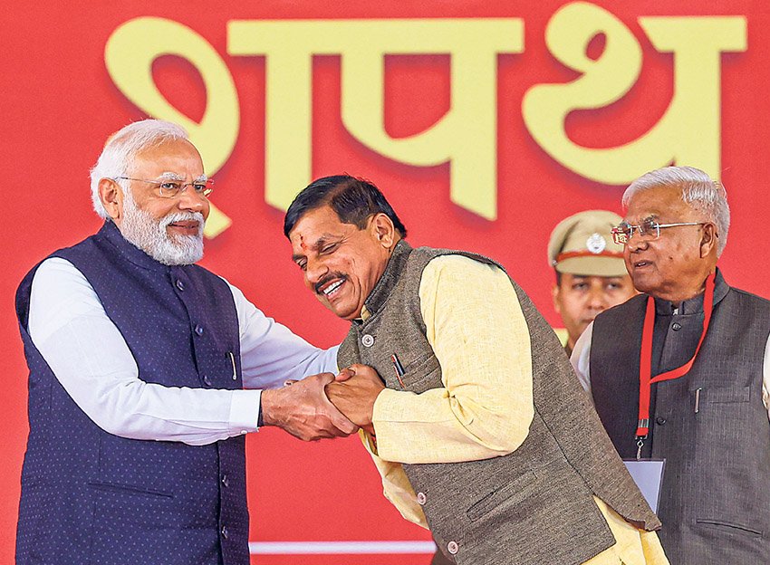 ਭਾਜਪਾ ਵਿਧਾਇਕ ਦਲ ਦੇ ਨੇਤਾ ਅਤੇ ਉਜੈਨ ਤੋਂ ਵਿਧਾਇਕ ਮੋਹਨ ਯਾਦਵ ਨੇ ਬੁੱਧਵਾਰ ਨੂੰ ਮੱਧ ਪ੍ਰਦੇਸ਼ ਦੇ ਮੁੱਖ ਮੰਤਰੀ ਵਜੋਂ ਸਹੁੰ ਚੁੱਕੀ। 58 ਸਾਲਾ ਯਾਦਵ ਨੂੰ ਸੂਬੇ ਦੀ ਰਾਜਧਾਨੀ ਭੁਪਾਲ ਦੇ ਲਾਲ ਪਰੇਡ ਗਰਾਊਂਡ ’ਚ ਰਾਜਪਾਲ ਮੰਗੂਭਾਈ ਪਟੇਲ ਨੇ ਅਹੁਦੇ ਤੇ ਰਾਜ਼ਦਾਰੀ ਦੀ ਸਹੁੰ ਚੁਕਾਈ। ਮਲਹਾਰਗੜ੍ਹ ਤੋਂ ਵਿਧਾਇਕ ਜਗਦੀਸ਼ ਦੇਵੜਾ ਅਤੇ ਰੀਵਾ ਤੋਂ ਵਿਧਾਇਕ ਰਾਜੇਂਦਰ ਸ਼ੁਕਲਾ ਨੇ ਡਿਪਟੀ ਮੁੱਖ ਮੰਤਰੀ ਵਜੋਂ ਸਹੁੰ ਚੁੱਕੀ।