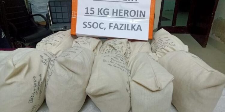 ਮੁੱਖ ਮੰਤਰੀ ਭਗਵੰਤ ਸਿੰਘ ਮਾਨ ਦੇ ਦਿਸ਼ਾ-ਨਿਰਦੇਸ਼ਾਂ ‘ਤੇ ਨਸ਼ਿਆਂ ਵਿਰੁੱਧ ਵਿੱਢੀ ਜੰਗ ਤਹਿਤ ਪੰਜਾਬ ਪੁਲਿਸ ਦੇ ਸਟੇਟ ਸਪੈਸ਼ਲ ਆਪ੍ਰੇਸ਼ਨ ਸੈੱਲ (ਐਸ.ਐਸ.ਓ.ਸੀ.) ਫਾਜ਼ਿਲਕਾ ਨੇ ਨਸ਼ਾ ਤਸਕਰੀ ਦੀ ਵੱਡੀ ਕੋਸ਼ਿਸ਼ ਨੂੰ ਨਾਕਾਮ ਕਰਦਿਆਂ ਇੱਕ ਤਸਕਰ ਨੂੰ 15 ਕਿਲੋ ਹੈਰੋਇਨ (10 ਪੈਕੇਟ), ਜੋ ਤੂੜੀ ਨਾਲ ਭਰੀ ਟਰੈਕਟਰ-ਟਰਾਲੀ ਵਿੱਚ ਲੁਕਾ ਕੇ ਰੱਖੀ ਹੋਈ ਸੀ, ਸਮੇਤ ਗ੍ਰਿਫ਼ਤਾਰ ਕੀਤਾ ਹੈ।