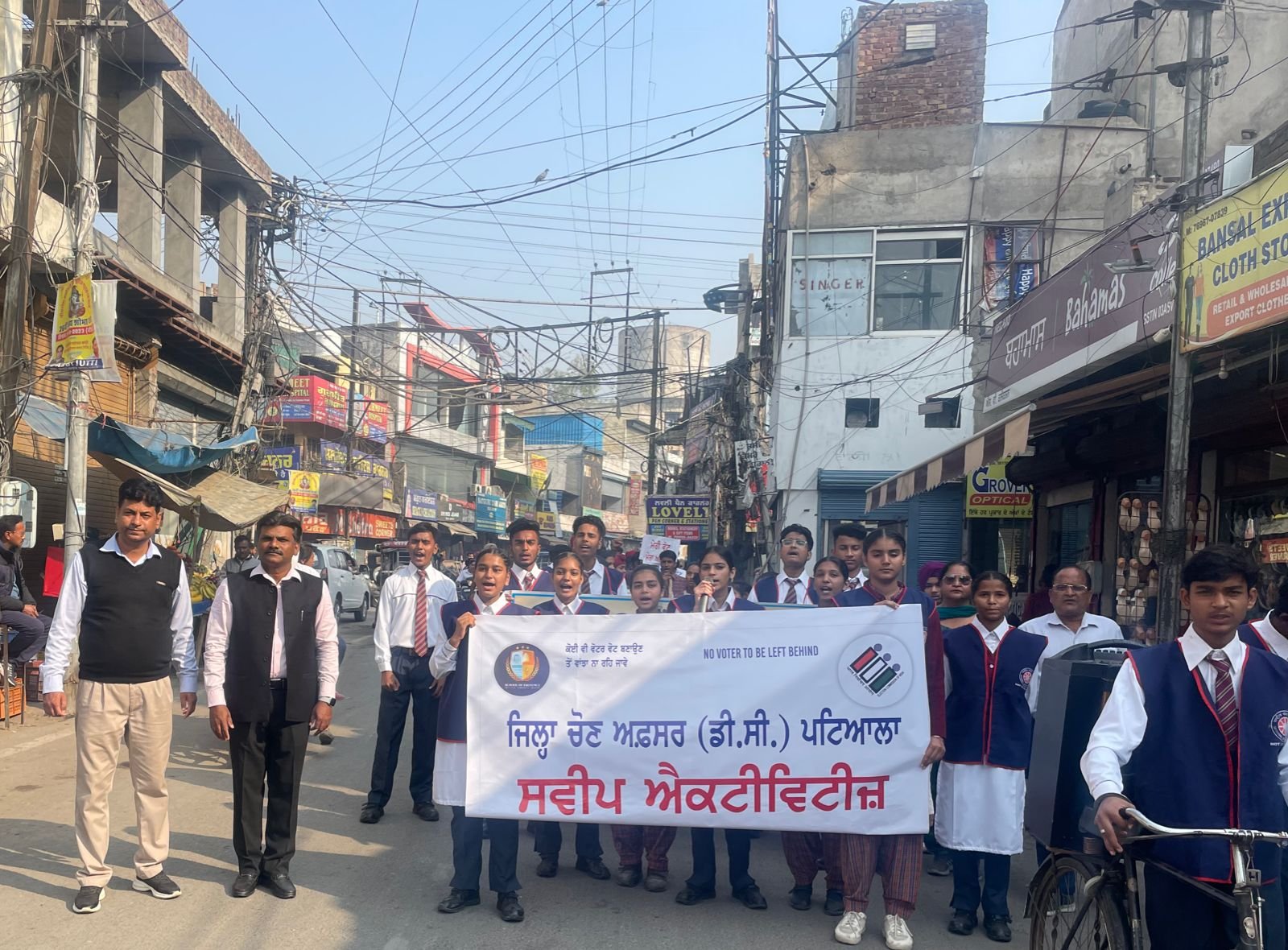 ਵੋਟਰਾਂ ਨੂੰ ਆਪਣੇ ਵੋਟ ਦੇ ਹੱਕ ਪ੍ਰਤੀ ਜਾਗਰੂਕ ਕਰਨ ਦੇ ਮਕਸਦ ਨਾਲ ਜ਼ਿਲ੍ਹਾ ਪ੍ਰਸ਼ਾਸਨ ਪਟਿਆਲਾ ਵੱਲੋਂ ਸਵੀਪ ਗਤੀਵਿਧੀਆਂ ਤਹਿਤ ਸਰਕਾਰੀ ਸੀਨੀਅਰ ਸੈਕੰਡਰੀ ਸਕੂਲ ਫੀਲਖਾਨਾ ਦੇ ਵਿਦਿਆਰਥੀਆਂ ਨਾਲ ਜਾਗਰੂਕਤਾ ਸਾਈਕਲ ਰੈਲੀ ਕੱਢੀ ਗਈ। ਇਸ ਰੈਲੀ ਨੂੰ ਜ਼ਿਲ੍ਹਾ ਨੋਡਲ ਅਫ਼ਸਰ ਸਵੀਪ ਪ੍ਰੋ. ਸਵਿੰਦਰ ਸਿੰਘ ਰੇਖੀ ਨੇ ਹਰੀ ਝੰਡੀ ਦੇ ਕੇ ਰਵਾਨਾ ਕੀਤਾ, ਜਿਸ ਵਿੱਚ 120 ਤੋਂ ਵੱਧ ਲੋਕਾਂ ਨੇ ਭਾਗ ਲਿਆ।