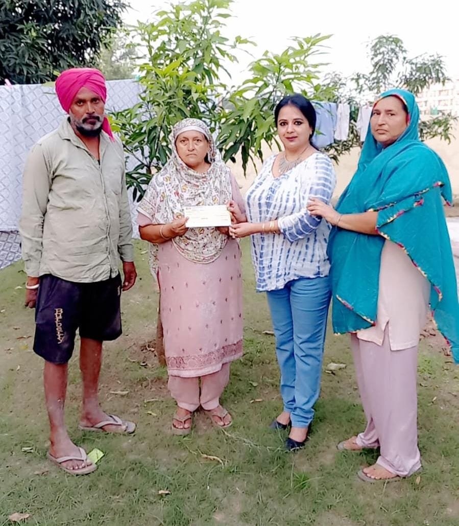 ਬਾਰਿਸ਼ ਕਾਰਨ ਜ਼ਿਲ੍ਹਾ ਮੋਹਾਲੀ ਦੇ ਅਧੀਨ ਪਿੰਡ ਘੜੂੰਆਂ ਦੇ ਰਹਿਣ ਵਾਲੇ ਮਨਜੀਤ ਕੌਰ ਅਤੇ ਗੁਰਪ੍ਰੀਤ ਸਿੰਘ ਦੇ ਘਰ ਦੇ ਦੋ ਕਮਰੇ ਢਹਿ ਜਾਣ ਤੋਂ ਬਾਅਦ ਟਰੱਸਟ ਵੱਲੋਂ ਉਹਨਾਂ ਲਈ ਨਵੇਂ ਕਮਰੇ ਅਤੇ ਲੈਂਟਰ ਤਿਆਰ ਕਰਵਾਏ ਗਏ। ਇਸ ਉਪਰਾਲੇ ਤਹਿਤ ਸ੍ਰੀਮਤੀ ਅਮਰਜੀਤ ਕੌਰ ਪੂਜਾ ਖੁਦ ਪਿੰਡ ਘੜੂੰਆਂ ਪਹੁੰਚ ਕੇ ₹50,000 ਦਾ ਚੈੱਕ ਬੀਬੀ ਮਨਜੀਤ ਕੌਰ ਨੂੰ ਨਿੱਜੀ ਤੌਰ ਤੇ ਸੌਂਪਿਆ, ਜੋ ਉਨ੍ਹਾਂ ਦੀ ਸਮਰਪਿਤ ਨੇਤ੍ਰਿਤਾ ਦਾ ਪ੍ਰਤੀਕ ਹੈ।