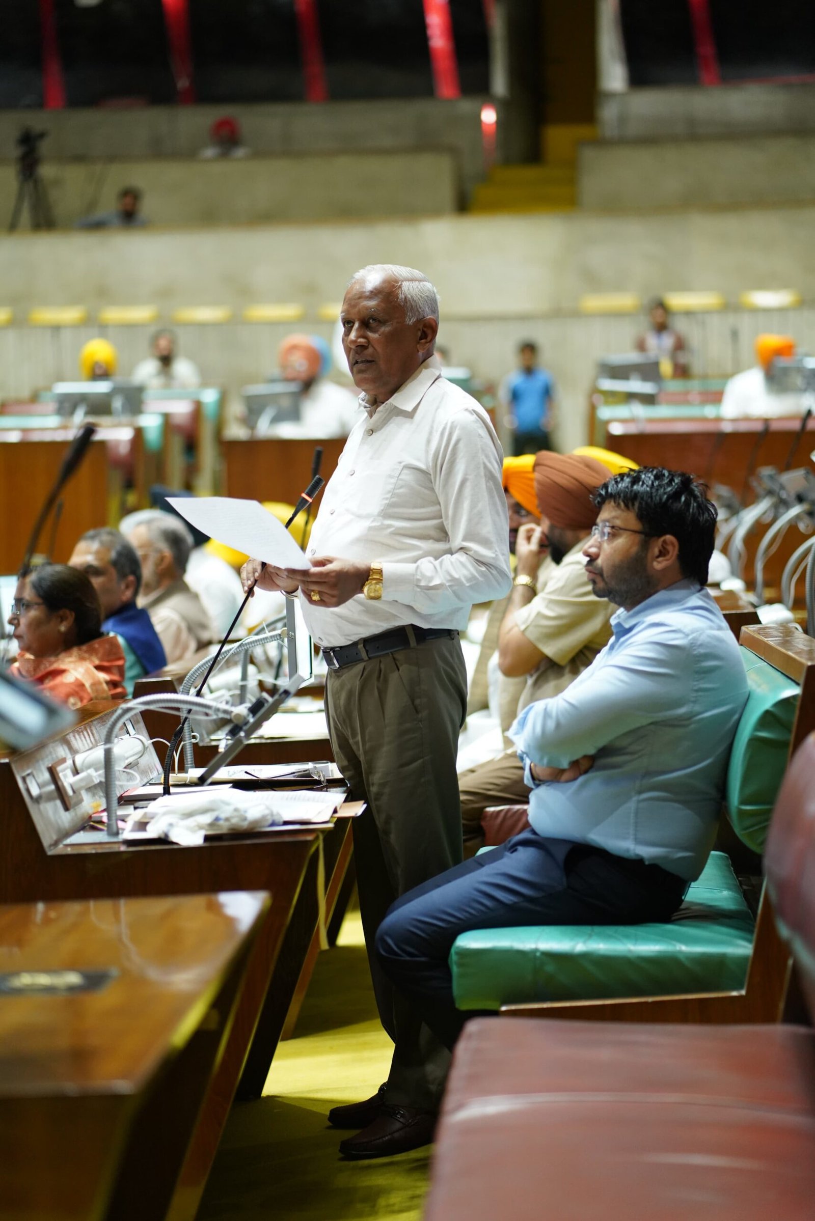 ਵਿਧਾਨ ਸਭਾ ਹਲਕਾ ਡੇਰਾ ਬੱਸੀ ਤੋਂ ਵਿਧਾਇਕ ਸ. ਕੁਲਜੀਤ ਸਿੰਘ ਰੰਧਾਵਾ ਵਲੋਂ ਵਿਧਾਨ ਸਭਾ ਵਿਚ ਪੇਸ਼ ਕੀਤੇ ਗਏ ਧਿਆਨ ਦਿਵਾਊ ਮਤੇ ਦਾ ਜਵਾਬ ਦਿੰਦਿਆਂ ਜਲ ਸਰੋਤ ਮੰਤਰੀ ਨੇ ਦੱਸਿਆ ਕਿ ਸਾਲ 2023 ਵਿੱਚ ਆਈ ਭਾਰੀ ਬਰਸਾਤ ਕਾਰਨ ਪਿੰਡ ਟਿਵਾਣਾ ਵਿਖੇ ਘੱਗਰ ਦਰਿਆ ਵਿੱਚ ਪਾਣੀ ਦਾ ਪੱਧਰ ਬਹੁਤ ਵੱਧ ਗਿਆ ਸੀ ਜਿਸ ਕਾਰਨ ਘੱਗਰ ਦਰਿਆ ਦੇ ਹੜ੍ਹ ਦੇ ਪਾਣੀ ਨਾਲ ਖੱਬੇ ਪਾਸੇ ਲੱਗਦੀਆਂ ਵਾਹੀਯੋਗ ਜ਼ਮੀਨਾਂ ਵਿੱਚ ਪਾਣੀ ਭਰ ਗਿਆ ਸੀ ਅਤੇ ਨਾਲ ਹੀ ਖੋਰਾ ਪੈਣ ਨਾਲ ਜ਼ਮੀਨ ਦਾ ਪੱਧਰ ਲਗਭਗ 8 ਤੋਂ 10 ਫੁੱਟ ਨੀਵਾਂ ਹੋ ਗਿਆ ਸੀ ਜਿਸ ਉਪਰੰਤ ਵਿਭਾਗ ਵਲੋਂ ਵਾਹੀਯੋਗ ਜ਼ਮੀਨ ਨੂੰ ਖੋਰ ਤੋਂ ਬਚਾਉਣ ਲਈ 2500 ਫੁੱਟ ਦੀ ਲੰਬਾਈ ਵਿੱਚ ਪੱਥਰਾਂ ਦੀ ਰਿਵੈਟਮੈਂਟ ਅਤੇ ਸਟੱਡ ਲਗਾਏ ਗਏ ਸਨ ਇਸ ਰਿਵੈਟਮੈਂਟ ਨੂੰ ਸਪੋਰਟ ਕਰਨ ਲਈ ਇਸ ਦੇ ਪਿੱਛੇ ਮਿੱਟੀ ਦੀ ਭਰਤੀ ਕਰਦੇ ਹੋਏ ਬੰਨ੍ਹ ਬਣਾਇਆ ਗਿਆ ਸੀ। ਉਨ੍ਹਾਂ ਦੱਸਿਆ ਇਸ ਕੰਮ ਨੂੰ ਕਰਨ ਲਈ ਵਿਭਾਗ ਵਲੋਂ 5.06 ਕਰੋੜ ਦਾ ਖਰਚਾ ਕੀਤਾ ਗਿਆ ਸੀ।
